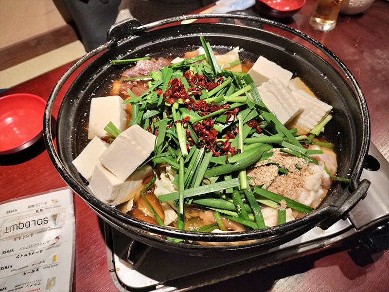 ![]() イカの活き作りとモツ鍋 |