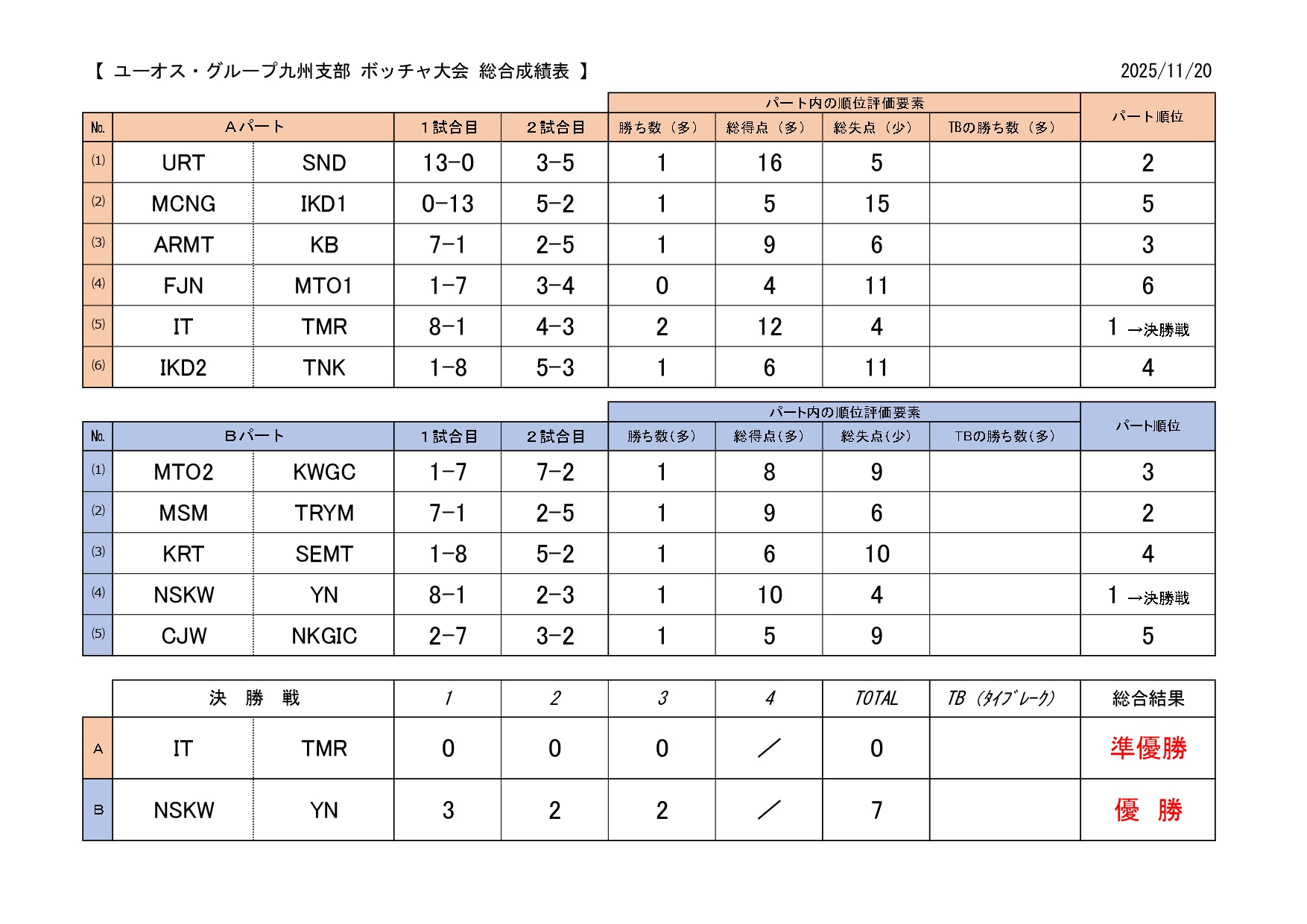 に分けて、それぞれ再上位チームによる決勝戦の結果、