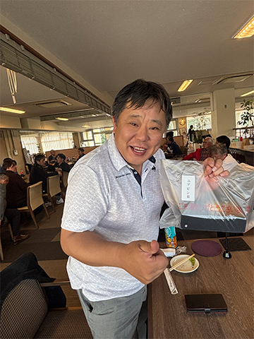 ![]() どこでも優勝賞品をさらっていくK氏 | ![]() トホホのT氏 |
